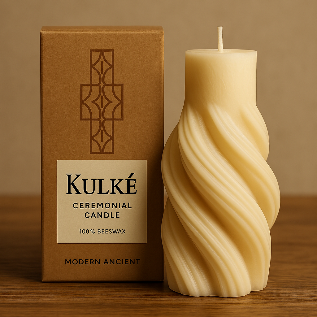 Hand-poured with 100% pure beeswax, KULKÉ Ceremonial Candles are designed with flowing, sculptural twists and inspired by ancient geometry, each candle invites presence, grounding, and a return to simplicity. Beeswax’s natural scent and air-purifying properties set the tone for slow mornings, intentional evenings, and sacred pauses in between.